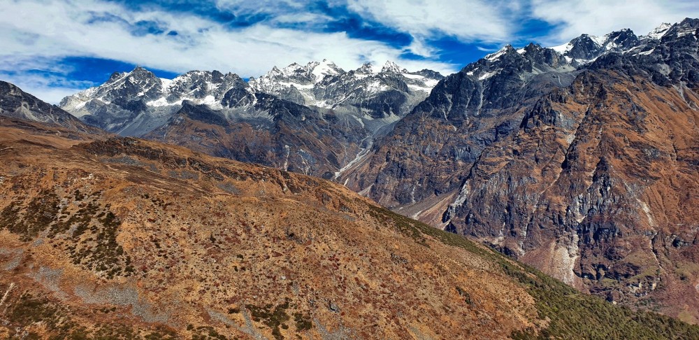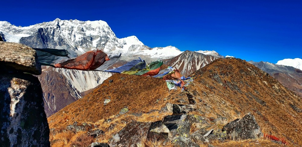 As the country is blessed with good grasslands it's very convenient for local yak herds. In each step one takes, nature will startle them with its beauty. The trail passes through the small village of Langtang, where many of the inhabitants can be seen churning rich yak milk into butter and a destination ahead is Kyanjin Gompa which also is the last permanent settlement in the Valley. There is a small monastery, a cheese factory, and amazingly built lodges. Kyanjin makes a good base for further exploration of the Upper Langtang Valley. There is a giant viewpoint from where the overall view of the ridged peaks can be seen, the valley looks majestic. Most of the people take the opportunity to explore heaven from a viewpoint (4,984m) which is almost three hours walk from the base of Kyanjin. Langtang Lirung, Dorje Lhakpa, and Phurbi Chyanchu circle the Kyanjin valley, and anyone making up to that place breathes nature for sure.