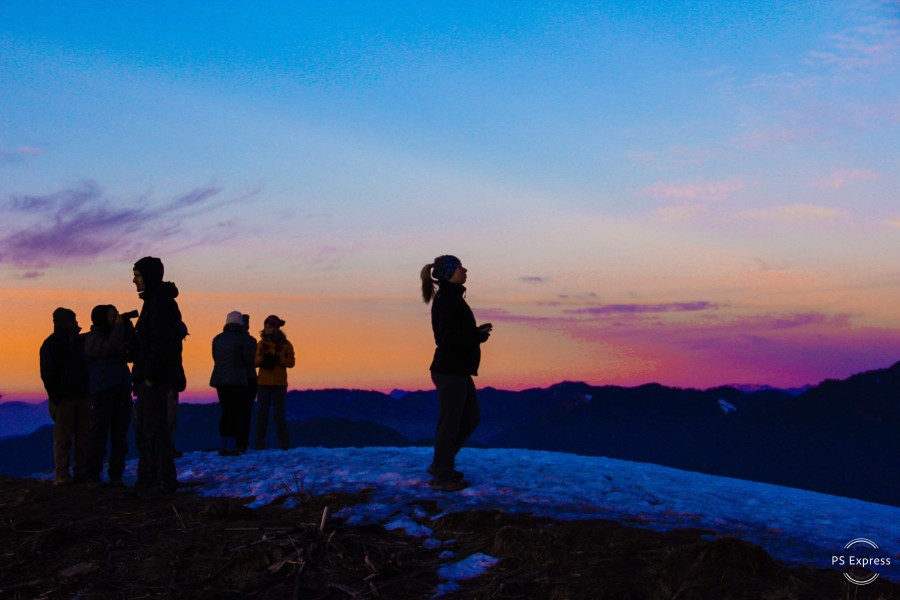 We leave the treeline ridge and follow the trail of the majestic Alpine zone to start our day.