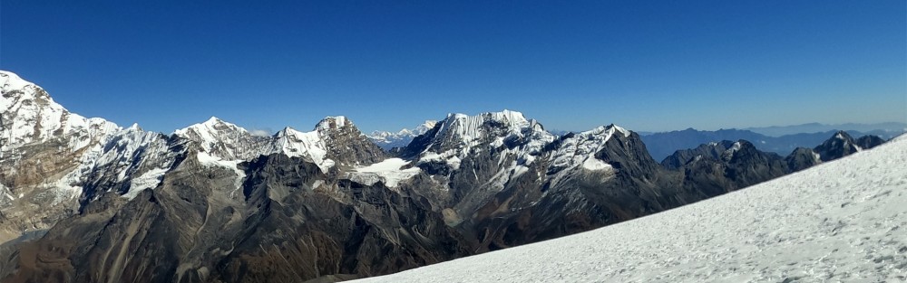 The view of the peaks is splendid, Kanchenjunga in the east, Makalu in front of us, Lhotse, Everest, Ama Dablam to the west.